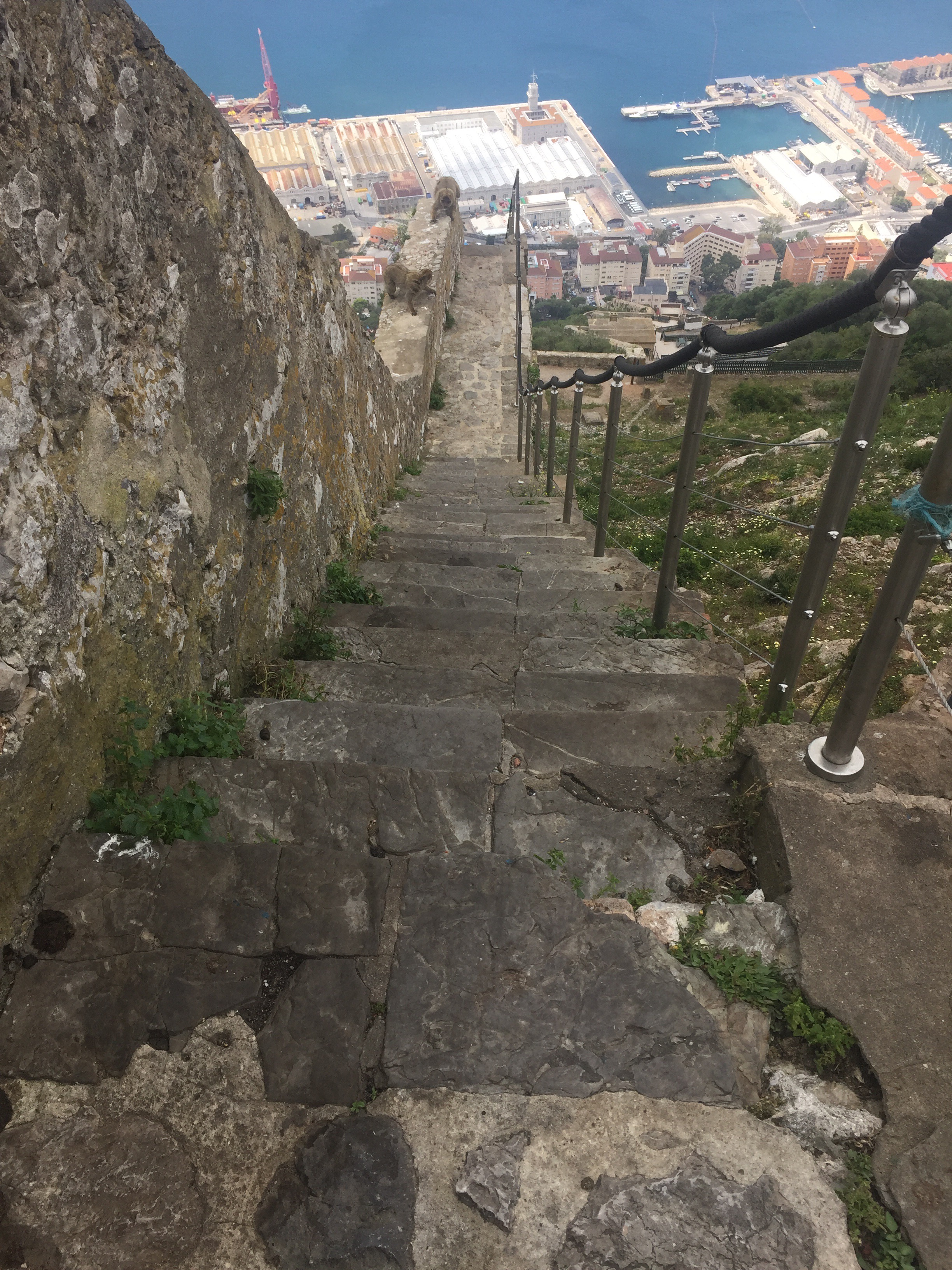 The Mediterranean steps were originally constructed by the British Military as part of the fortification of the Rock.  I can’t imagine how hard it must have been to build the steps in the searing heat with the inhospitable terrain but I hope they took some small solace in the breathtaking views across the Straits to Morocco, we certainly did.